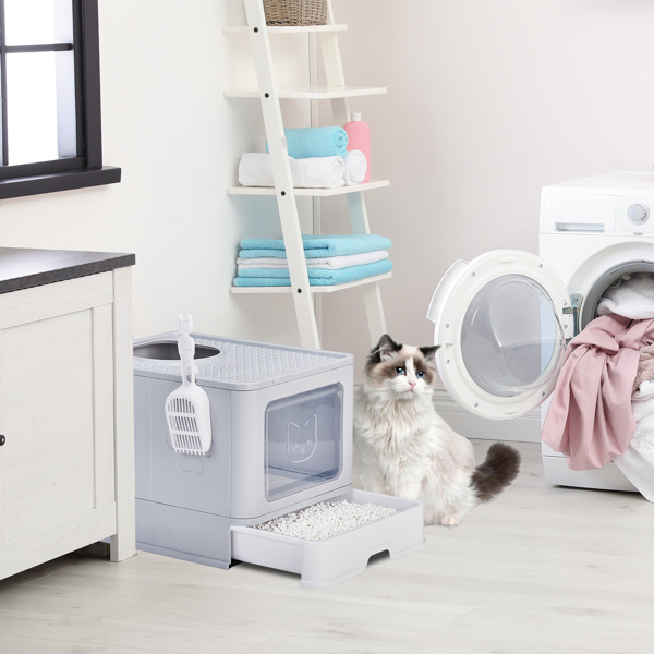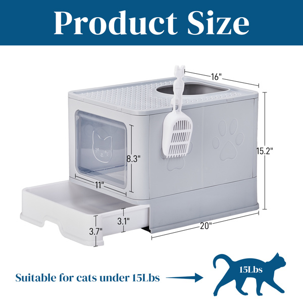 5. Practical & Convenient Features: Includes a hanging litter scoop for quick access and thoughtful design details like rounded edges and a streamlined structure, ensuring a seamless and user-friendly experience for both you and your pet.