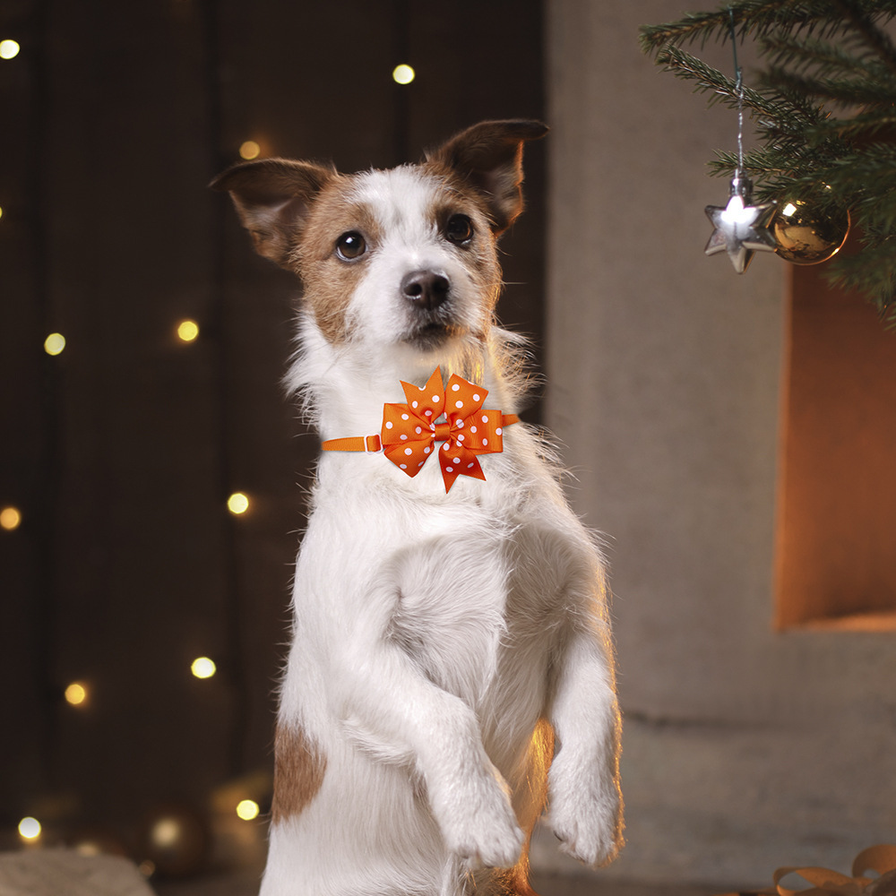 Name: Pet cats and dogs pure color wave point hexagon bow tie
