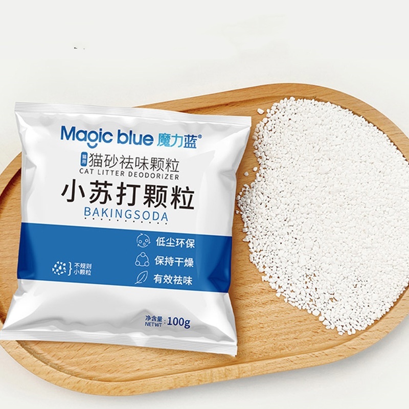 Usage: Evenly sprinkle soda deodorant particles on the surface of cat litter or use mixed cat litter; If strong deodorant is needed, it is recommended to evenly cover the upper layer of cat litter with a layer of soda deodorant particles on the basis of use.